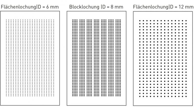 Alle Lochbilder haben den gleichen Preis. Noch besser: Der Preis für die neuen Variotherm AkustikDecken wurde um 20 Prozent gesenkt. Alle angebotenen Lochbilder und Größen sind lagernd und können in kurzer Zeit geliefert werden.